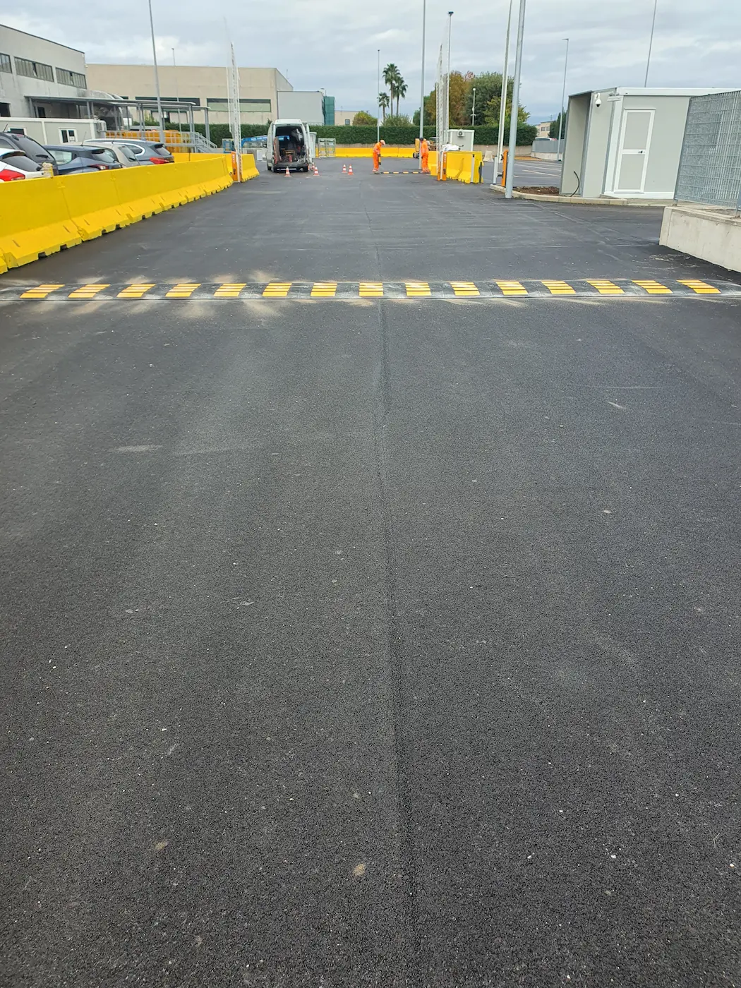 All’esterno è stato ampliato il piazzale con sbancamento e realizzato un nuovo impianto fognario nonché una nuova pavimentazione in asfalto.